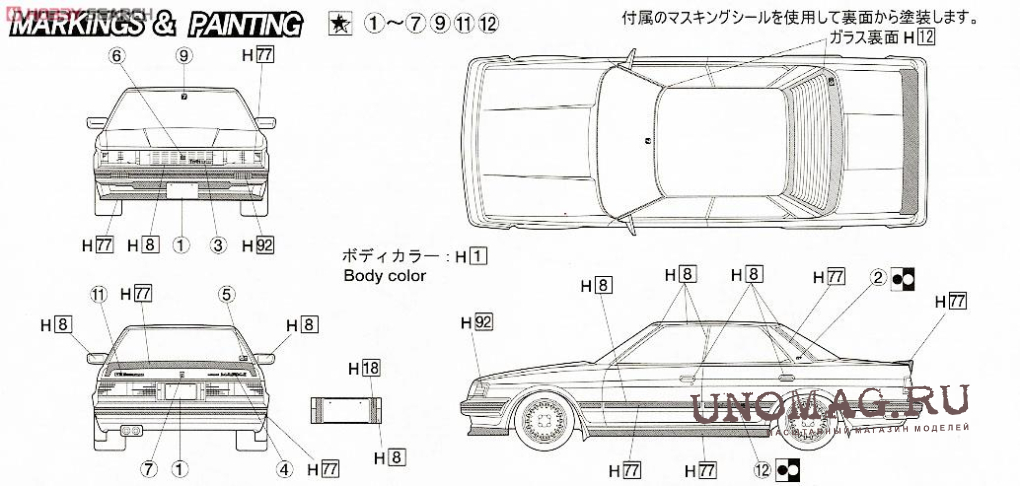 1:24 Сборная модель Toyota Crown 2000 Turbo S110