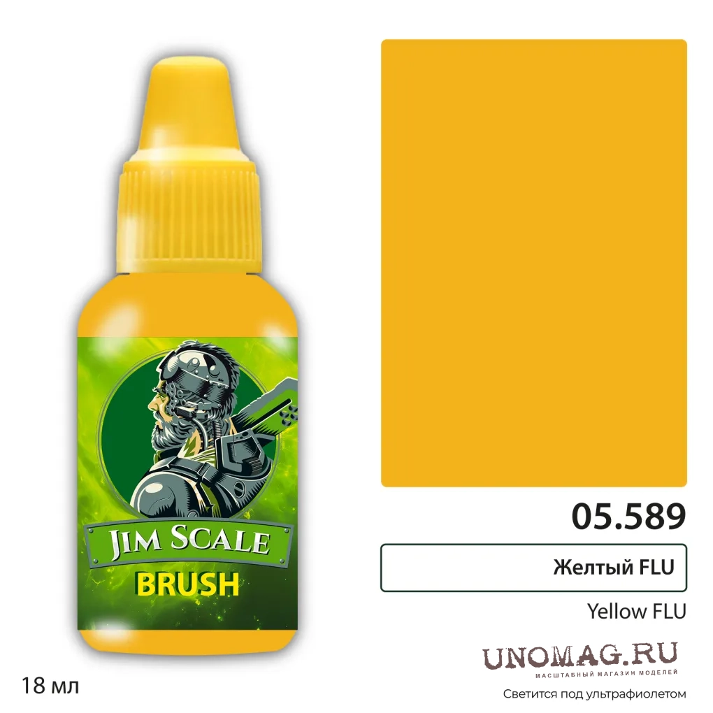 Краска акриловая под кисть Желтый Yellow FLU, 18мл