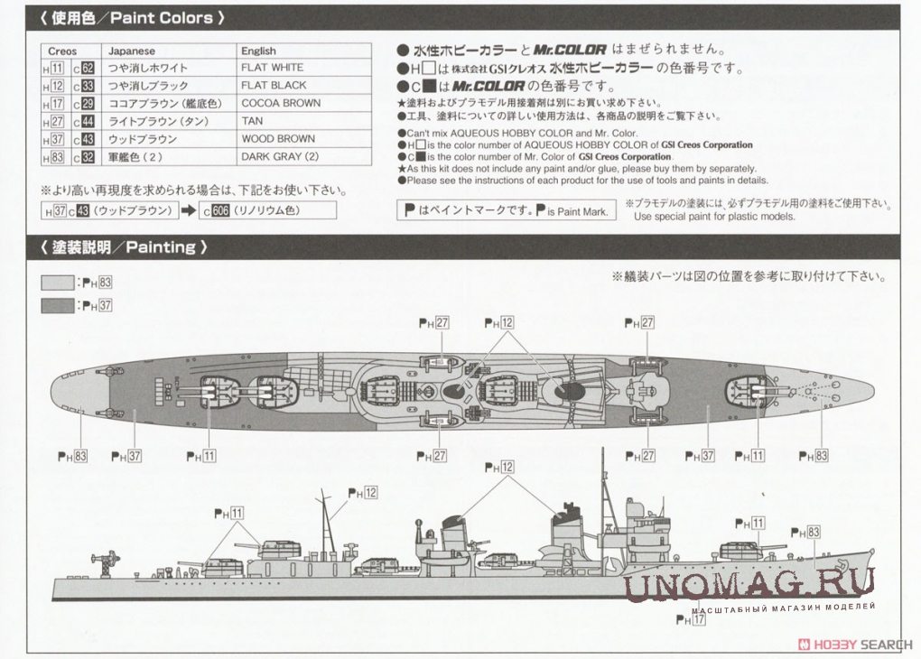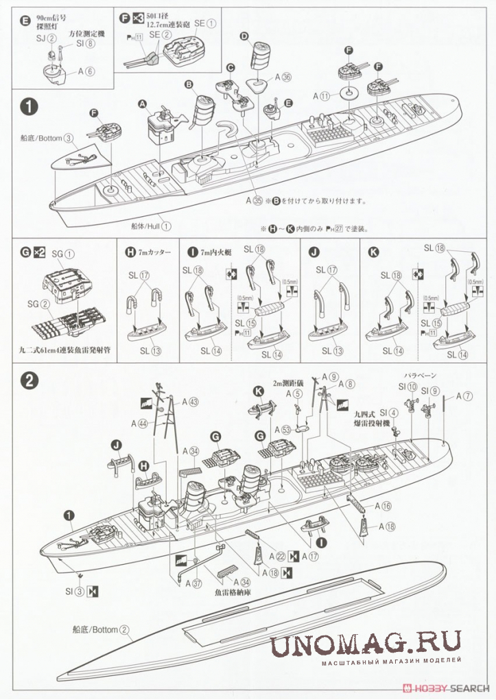 Сборная модель IJN Destroyer Kagero Water Line Series No. 442