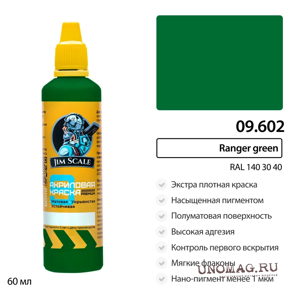 Краска акриловая Ranger green (RAL 140 30 40), 60 мл