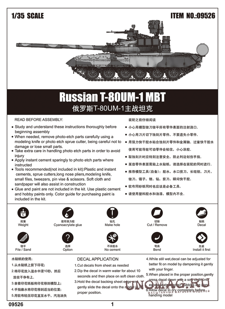 Сборная модель Russian танк Т-80UM-1 MBT