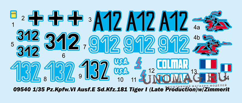 Сборная модель Немецкий тяжелый танк Tiger 1 - поздняя версия (с цемеритом)