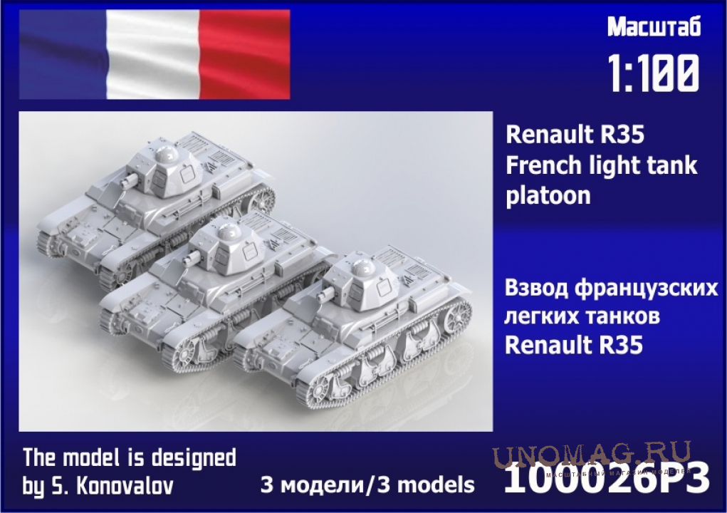 Сборная модел взвод французских лёгких танков Renault R35 (3 шт)