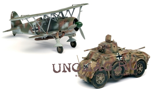 Сборная модель Набор 2 в 1 Бронеавтомобиль Autoblindo AB 41 и самолет CR 42 LW