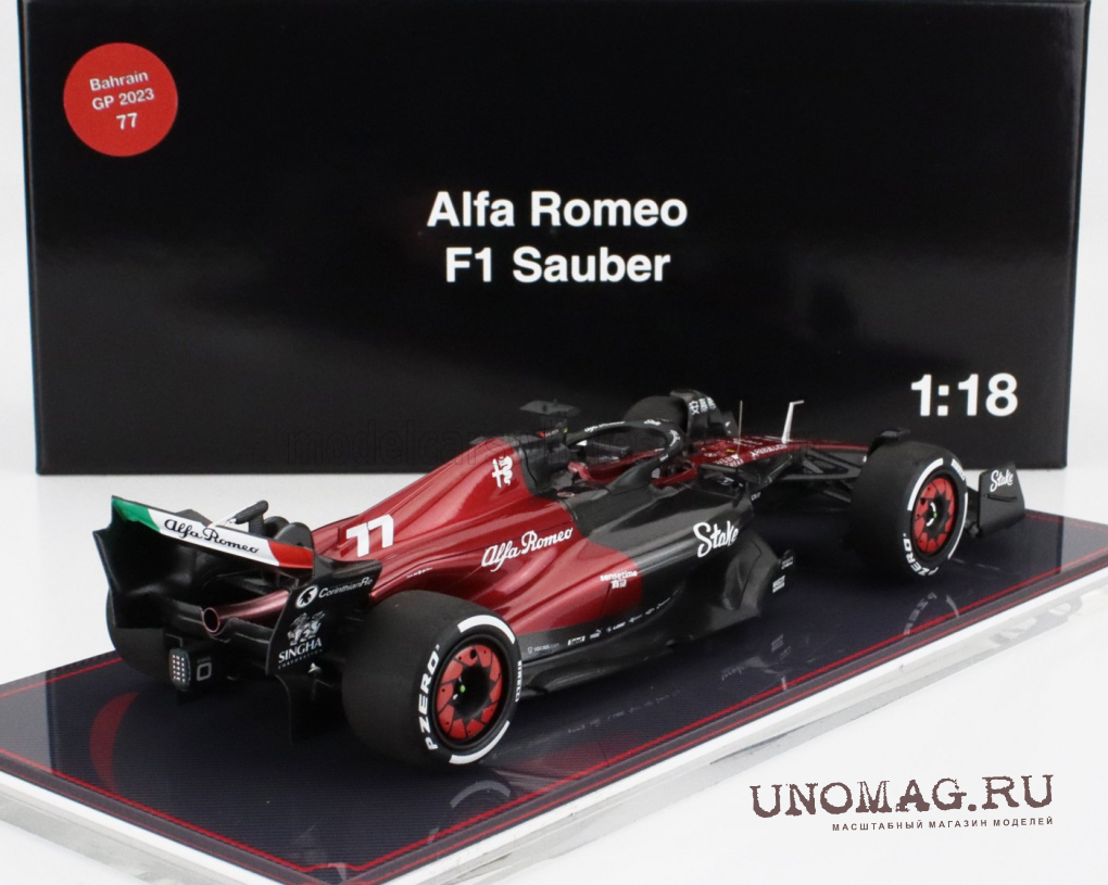 ALFA ROMEO F1 C43 Team Stake №77 Bahrain Gp (2023) Valtteri Bottas - Con Vetrina - With Showcase, Black Red