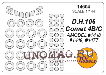 DH.106 Comet B/C - (AMODEL #1448, #1449, #1477) + маски на пассажирские окна и диски, и колеса