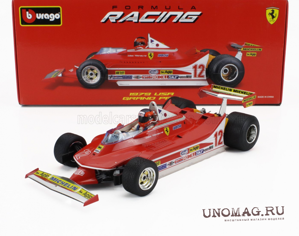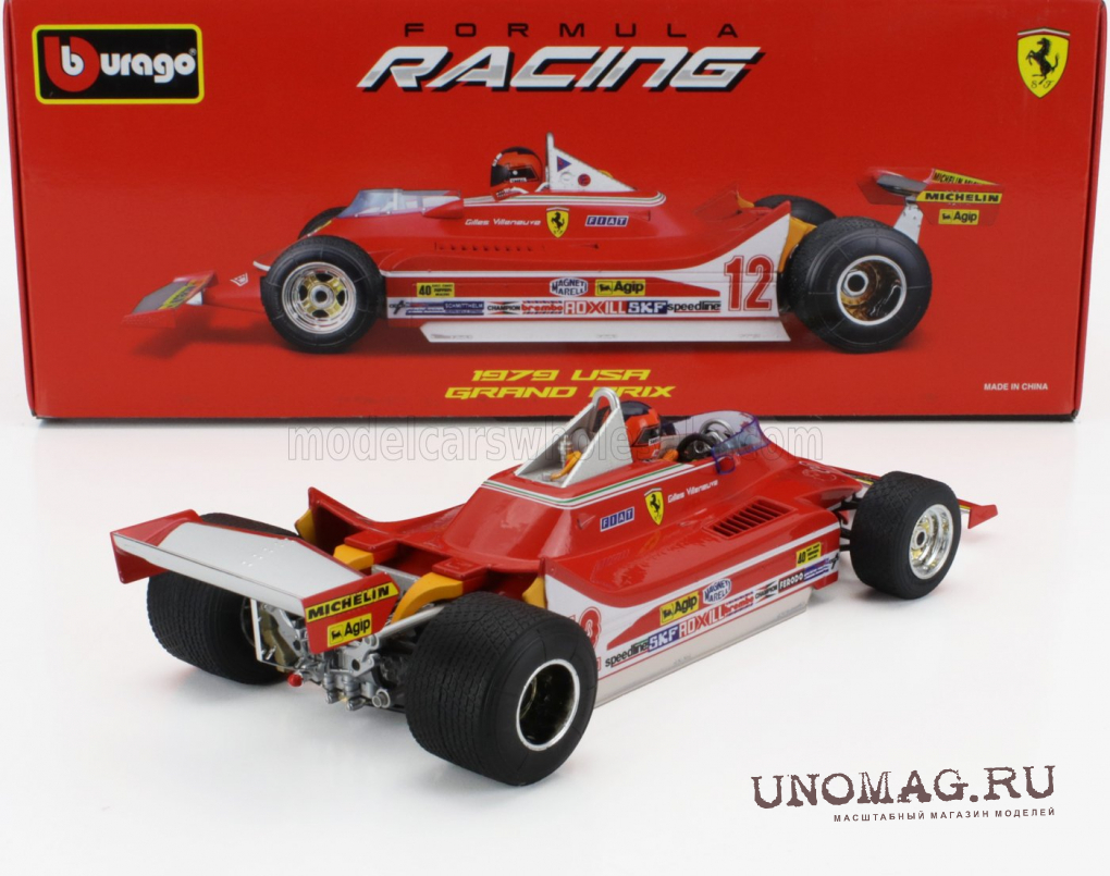 FERRARI F1 312t4 №12 Winner Watkins Glen Gp Usa (with Pilot Figure And Rain Wheels) (1979) Gilles Villeneuve, Red