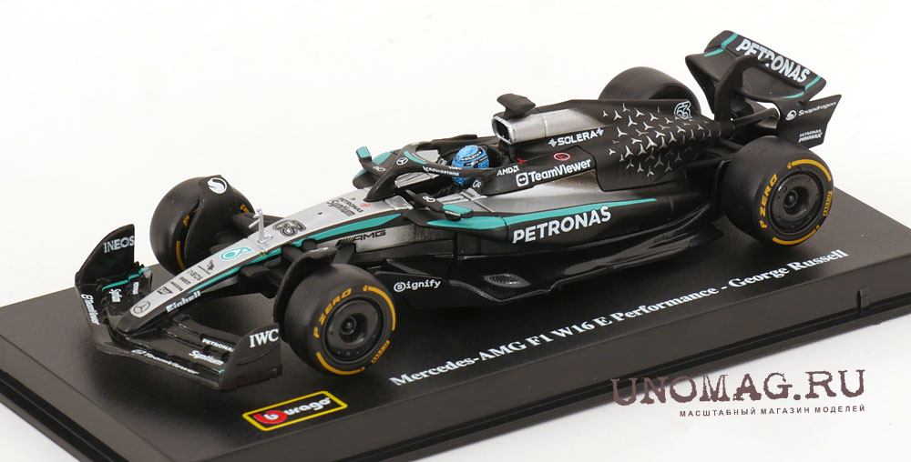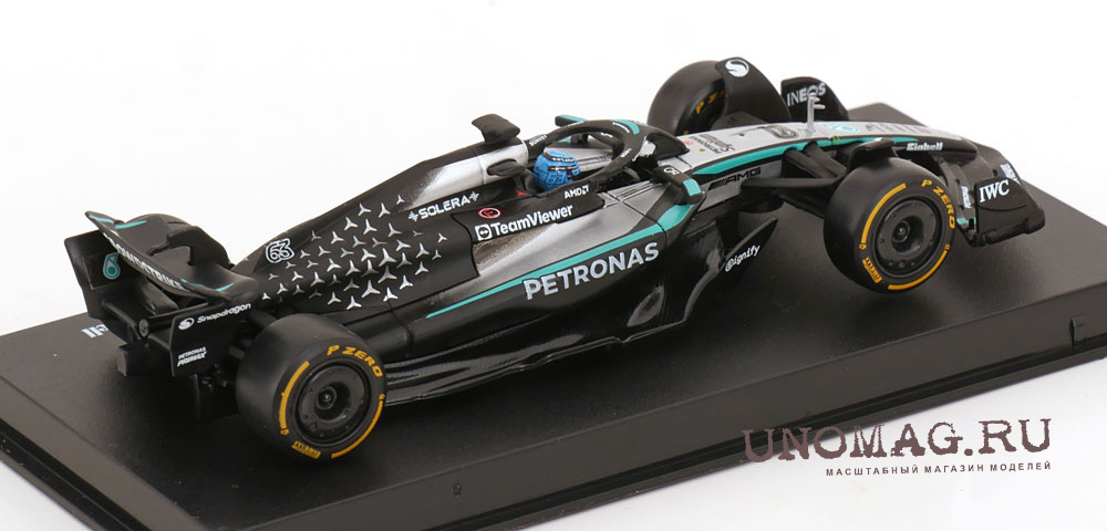 MERCEDES-BENZ GP F1 W16 Team Amg Petronas Motorsport №63 Season (2025) George Russell - With Pilot And Showcase, Black Silver Green