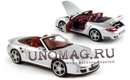 PORSCHE 911 Turbo Cabriolet Silver 2007, 187501 1/18, серебристый