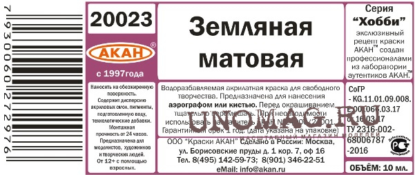 Акрилатная краска Земляная матовая (водоразбавляемая)