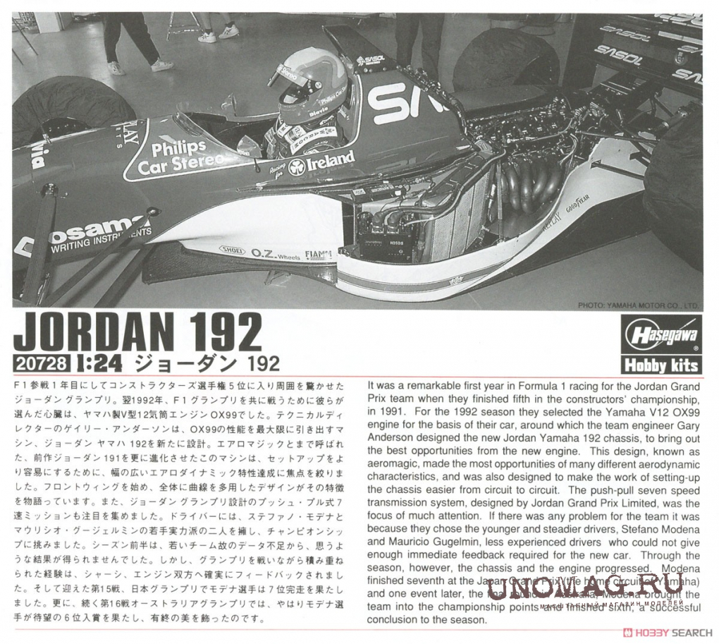 Сборная модель JORDAN F1 Yamaha Ox99 192 №32 Season (1992) Stefano Modena