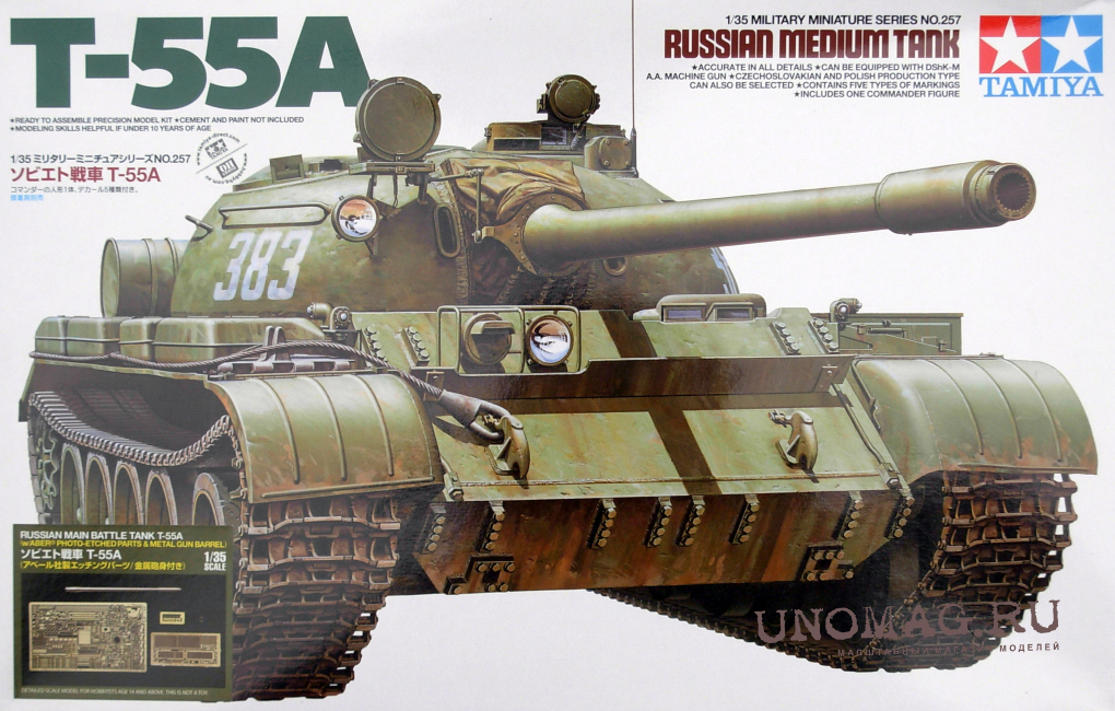 Сборная модель из пластика. Советский средний танк Т-55А с набором фототравления и металлическим стволом производства ABER.