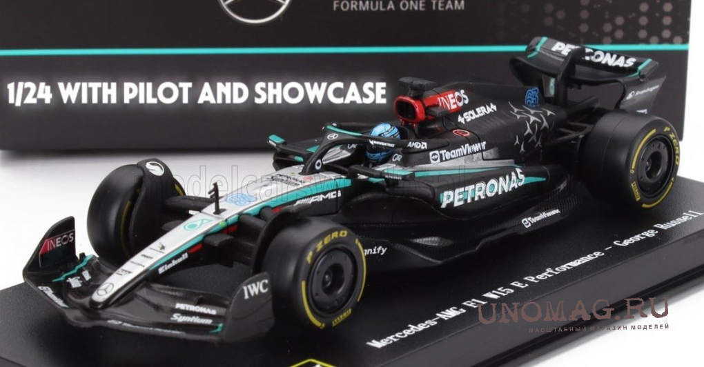 MERCEDES-BENZ GP F1 W15 Eq Performance Team Amg Petronas Motorsport №63 Season (2024) George Russell - With Pilot And Showcase, Black Silver Green