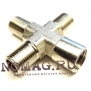 Разветвитель, 1 вход (гайка), 3 выхода (штуцер), металл