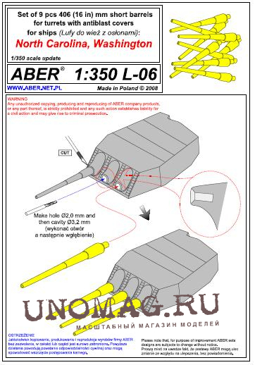 Set of 9pcs 406mm short barrels for Us ships: North Carolina, Washington