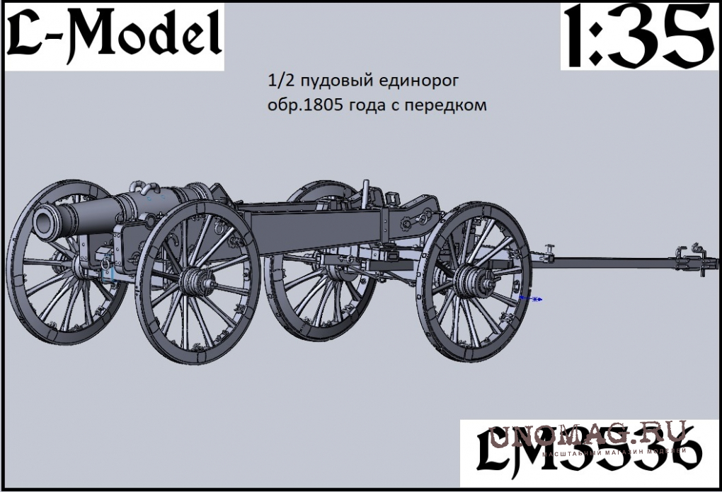 Сборная модель 1/2 пудовый Единорог обр.1805 года с передком