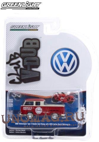 VOLKSWAGEN T2 Double Cab Pick-up с мотоциклом Indian "Sales & Service" 1968 with 1920 Indian Scout Motorcycle
