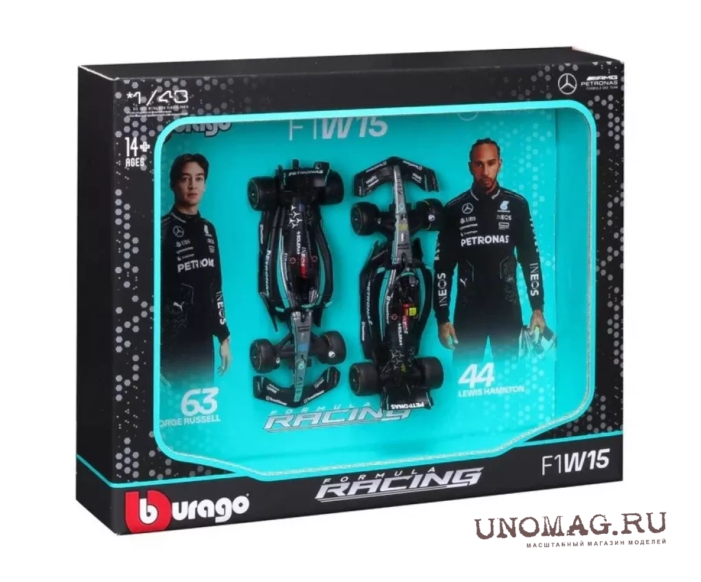 MERCEDES-BENZ GP Set F1 2x W15 Team Mercedes-amg Petronas Formula One №44 Season 2024 Lewis Hamilton + №63 George Russell, Black Silver Green