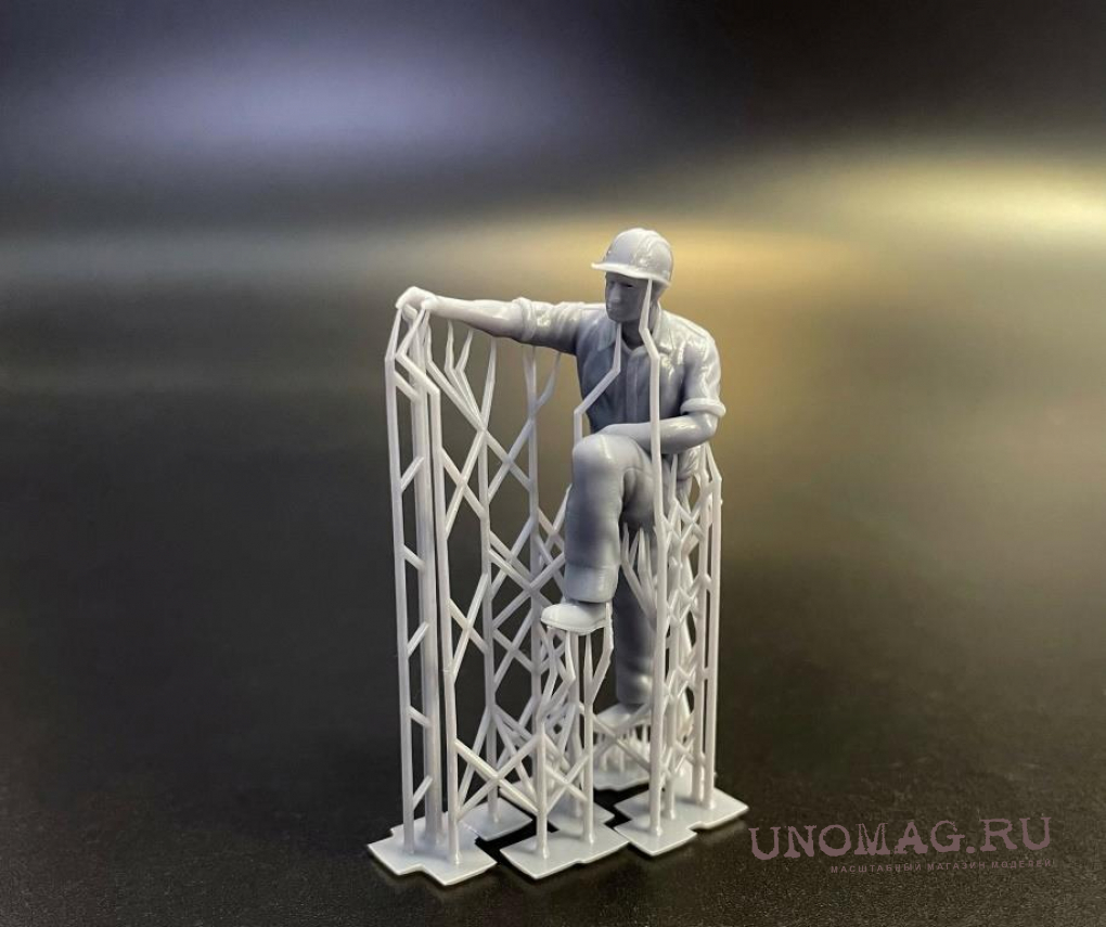 1:24 Фигура 0410 Рабочий на стройке сидит (масштаб 1:24), неокрашенная