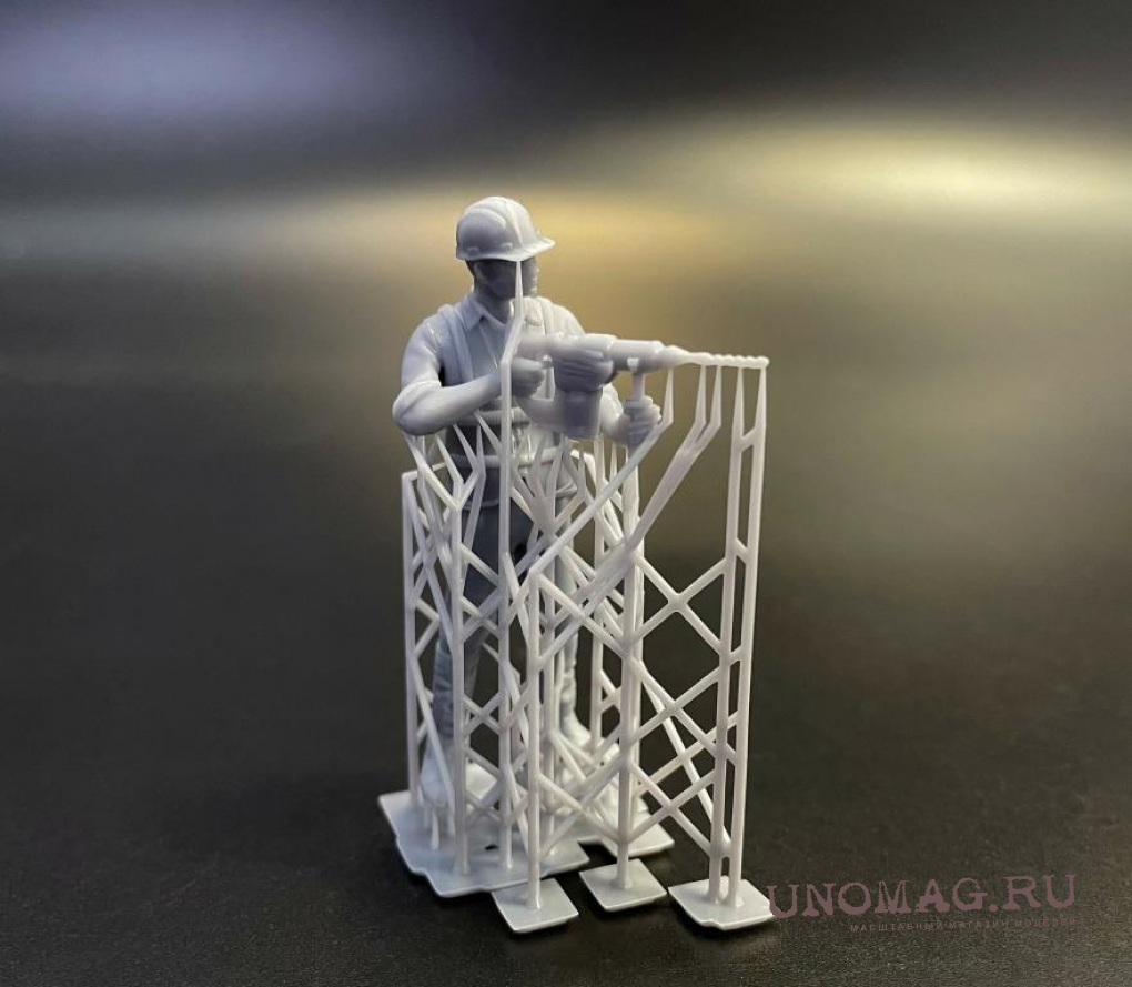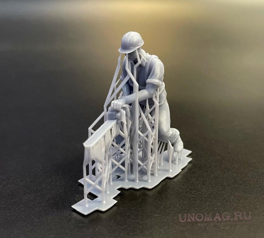 1:24 Фигура 0410 Рабочий на стройке сидит (масштаб 1:24), неокрашенная