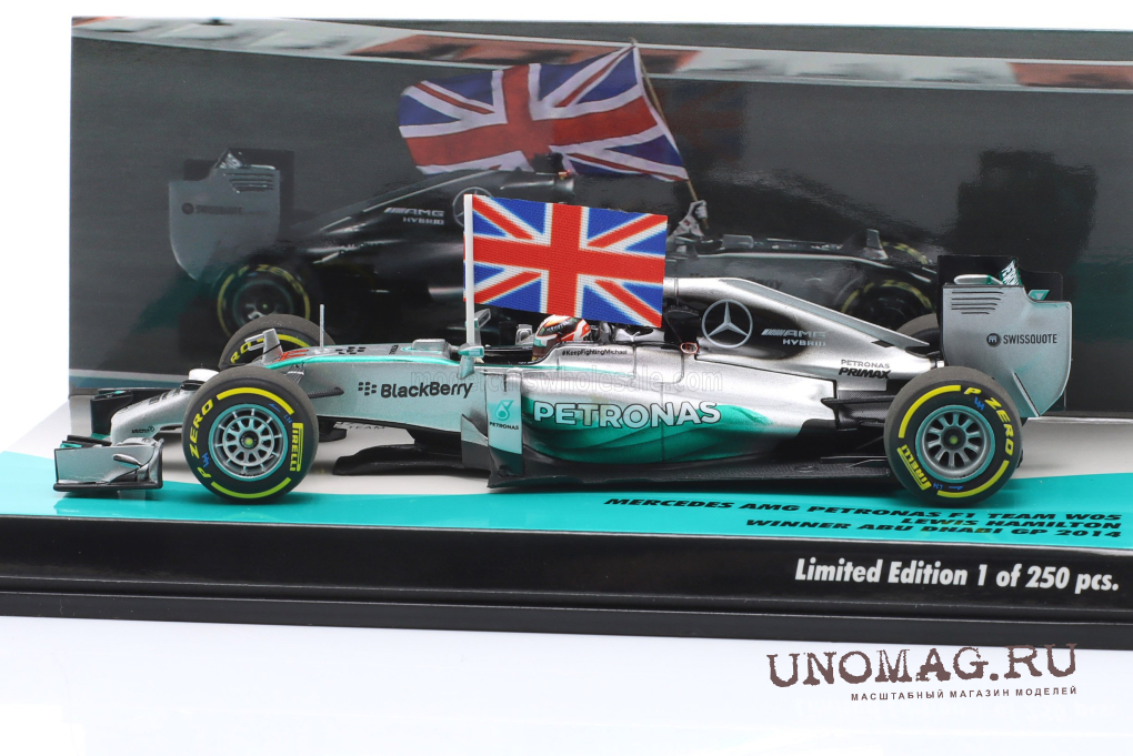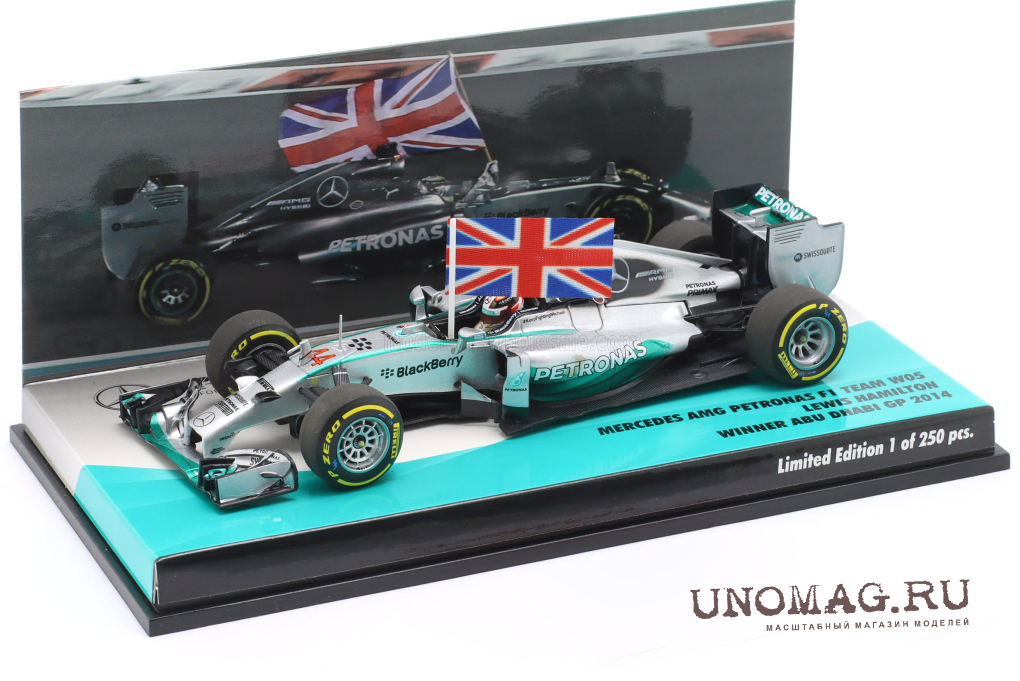 MERCEDES-BENZ GP F1 W05 Amg Petronas №44 World Champion Winner Abu Dhabi Gp With Flag (2014) Lewis Hamilton, Silver Green