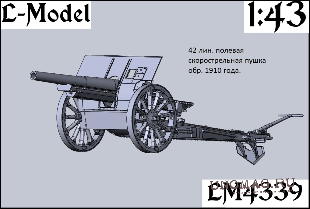 1:43 Сборная модель полевая скорострельная пушка 1900-го года на ПМВ