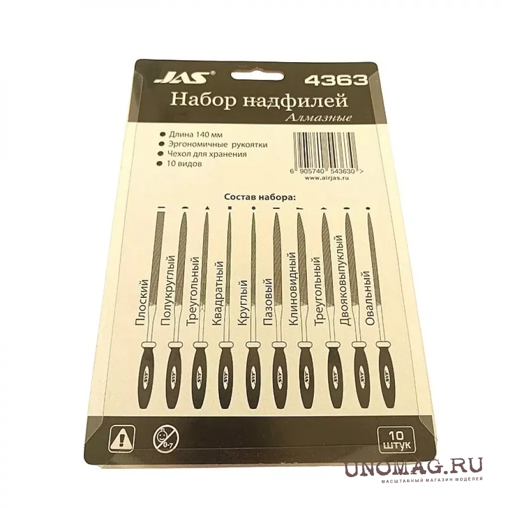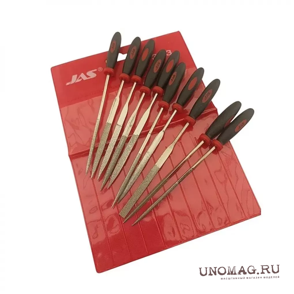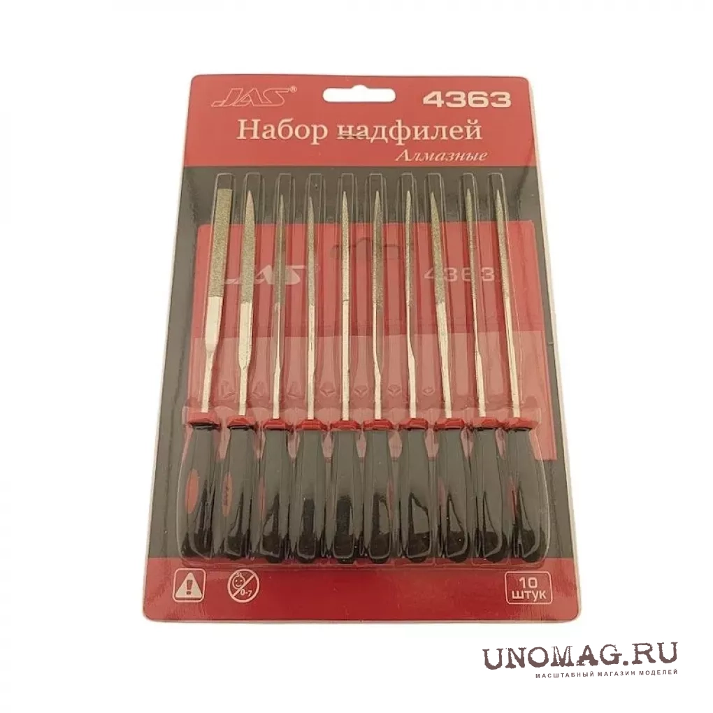 Набор надфилей с ручками, алмазные, 10 шт., блистер + чехол