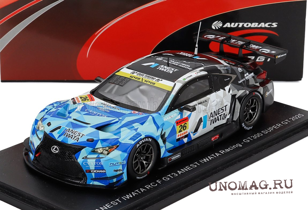 LEXUS Rc F Gt3 Team Anest Iwata Racing №26 Gt300 Class Super Gt (2025) Igor Fraga - Hironobu Yasuda, Blue White Black