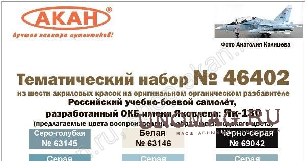 Набор акриловых красок Российский учебно-боевой самолёт, разработанный ОКБ имени Яковлева: Як-130