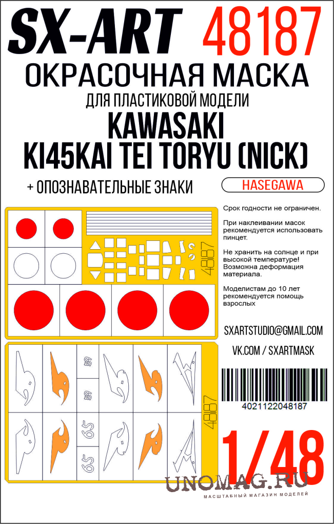 Маска окрасочна Kawasaki Ki45Kai Tei Toryu (Nick) (Hasegawa) + опознавательные знаки