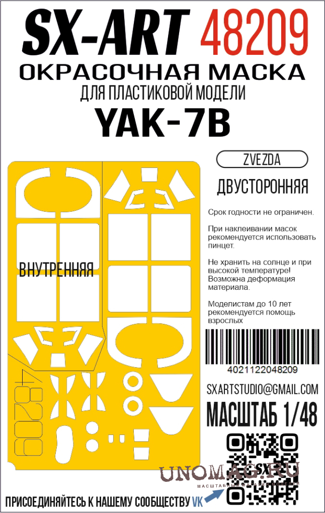 Маска окрасочная Як-7Б (Звезда) двусторонняя (арт. 4837)