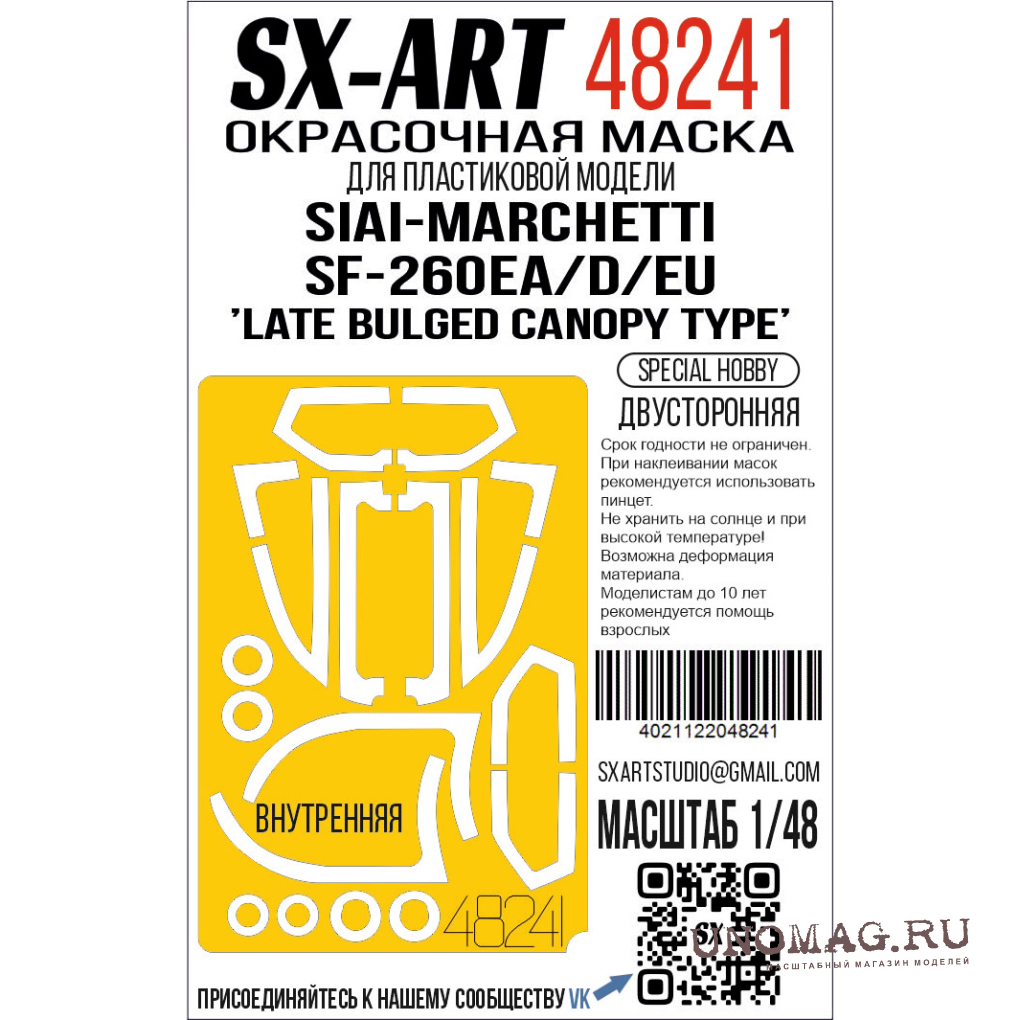 Маска окрасочная SIAI-Marchetti SF-260EA/D/EU 'Late Bulged Canopy Type' (Special Hobby)