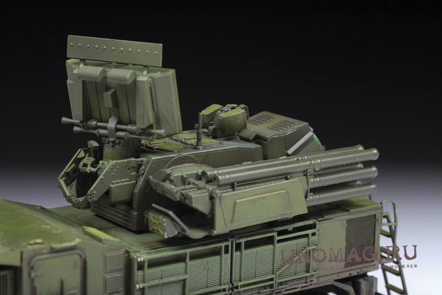 Комплекс оснащён двух диапазонной трехкоординатной радиолокационной станцией с фазированной антенной решёткой, а также скорострельными автоматическими пушками и радиоуправляемыми ракетами.