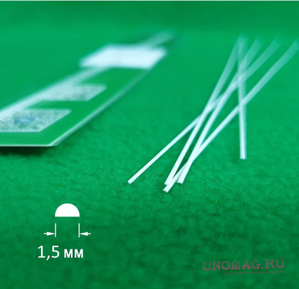 ABS пластик полукруг 1,5 мм - длина 250 мм - 5 шт