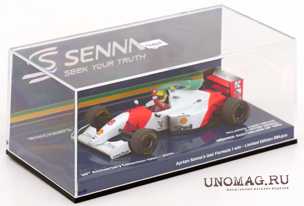 McLAREN F1 Ford Mp4/8 V8 Team Marlboro №8 Winner Australian Gp With Flag Dirty Version (1993) Ayrton Senna, White Red