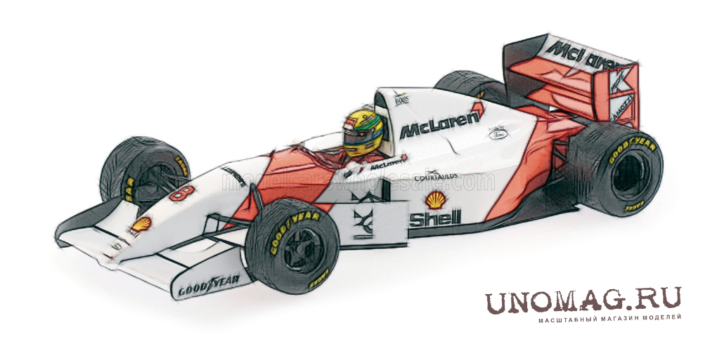 McLAREN Ford MP4/8 Ayrton Senna Winner European GP with flag (1993), Dirty Version