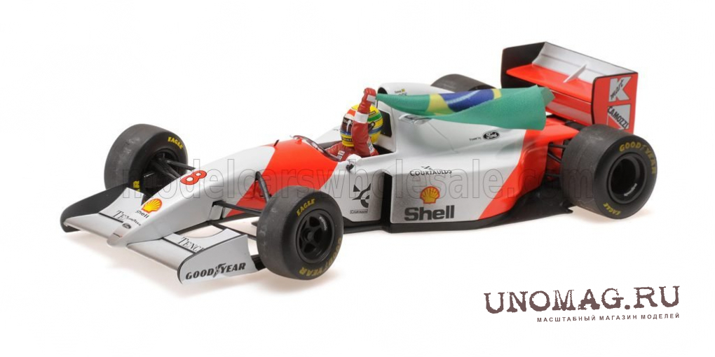 McLAREN F1 Ford Mp4/8 V8 Team Marlboro №8 Winner Australian Gp With Flag Dirty Version (1993) Ayrton Senna, White Red