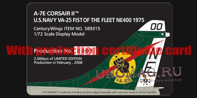 Vought A-7E Corsair II Diecast Model USN VA-25 Fist of the Fleet NE400 USS Ranger 1975 (Wings of Heroes)