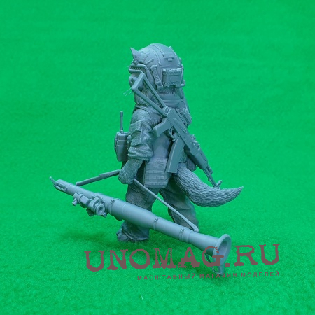 На ваш выбор - лапы в ботинках или без, в руке гранатомет или сумка.