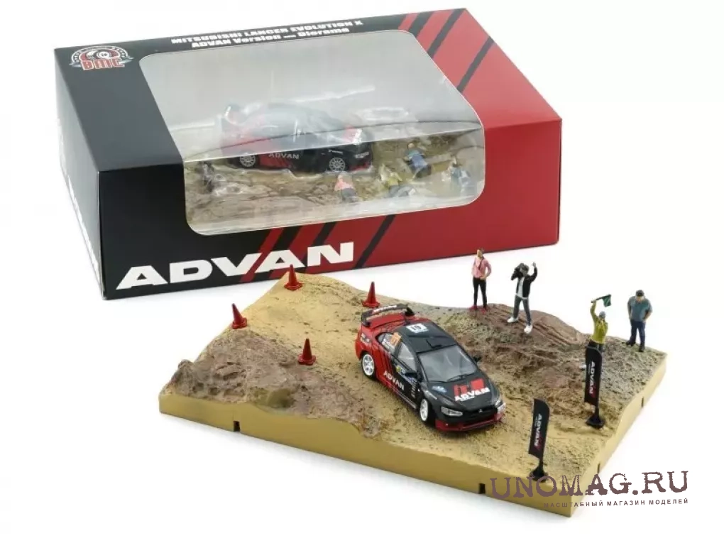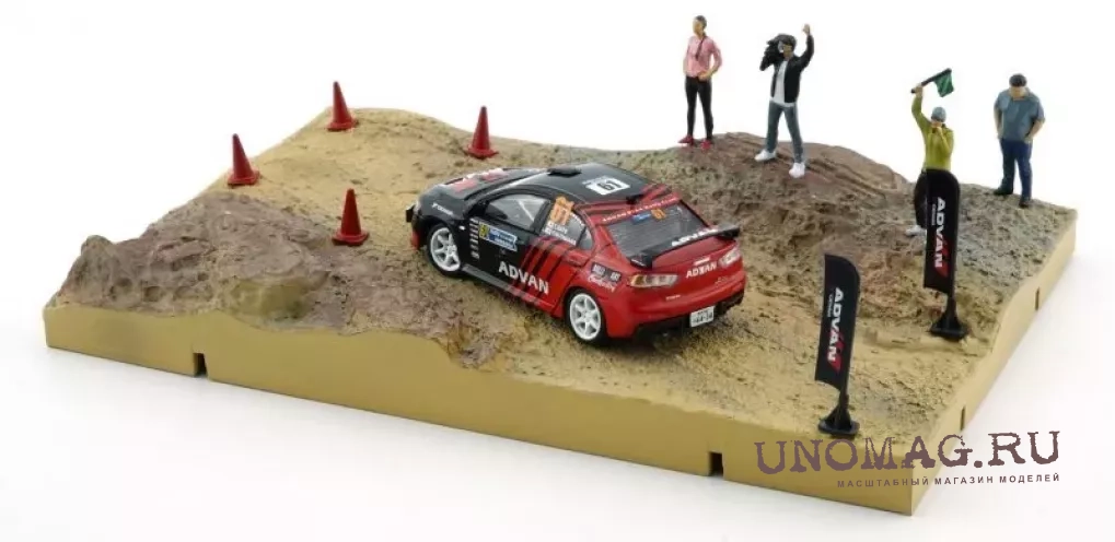 MITSUBISHI Diorama Mud Rally Country Side Lancer Evo X Advan + Accessories, Black Red