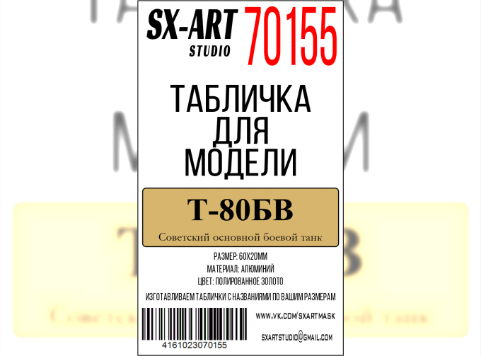 Табличка для модели Т-80БВ Советский основной боевой танк