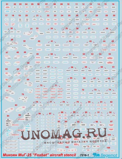 Декаль МиГ-25 "Foxbat", технические надписи