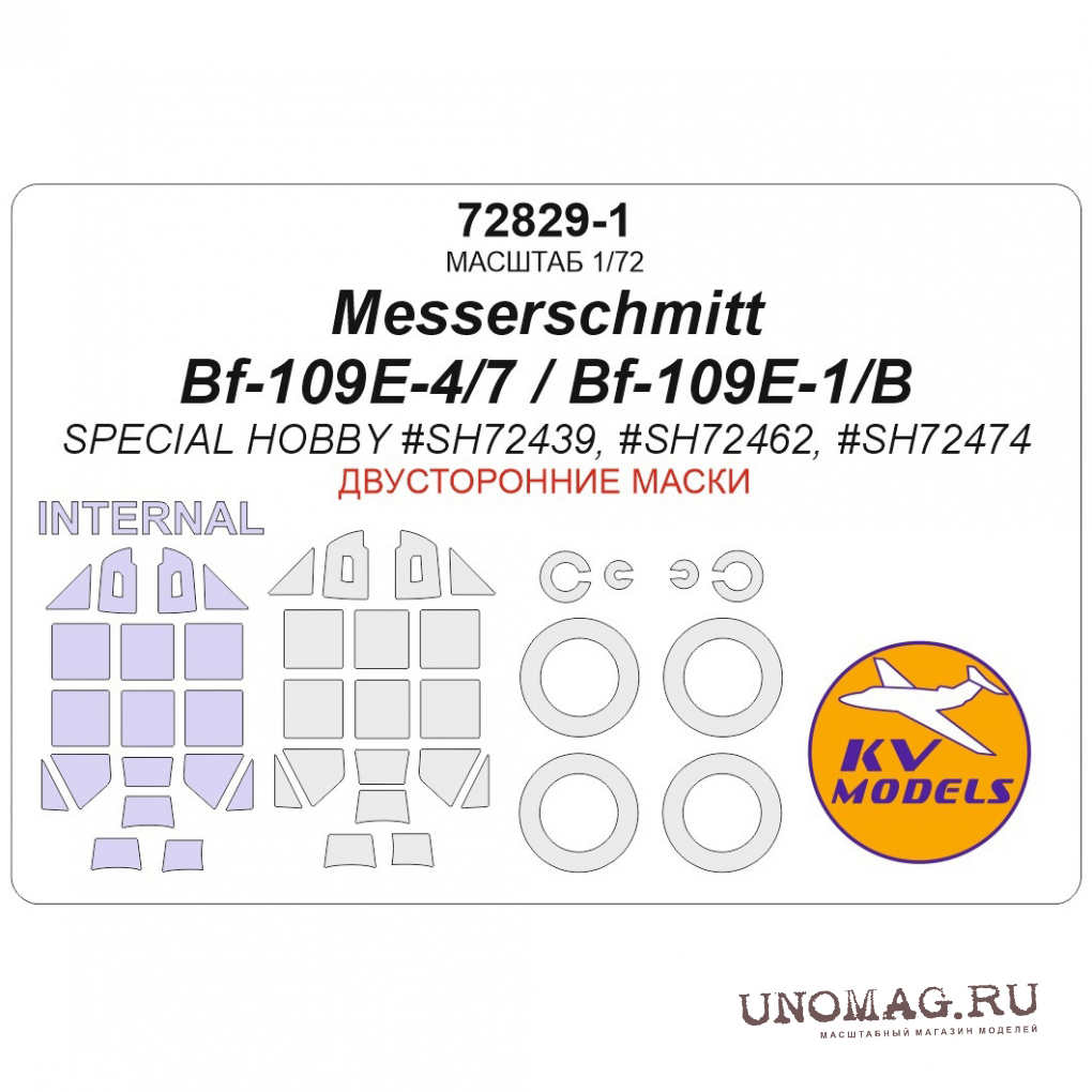 Маска окрасочная двусторонная Messerschmitt Bf-109E-4/7 / Bf-109E-1/B (SPECIAL HOBBY #SH72439, #SH72462, #SH72474) + маски на диски и колеса