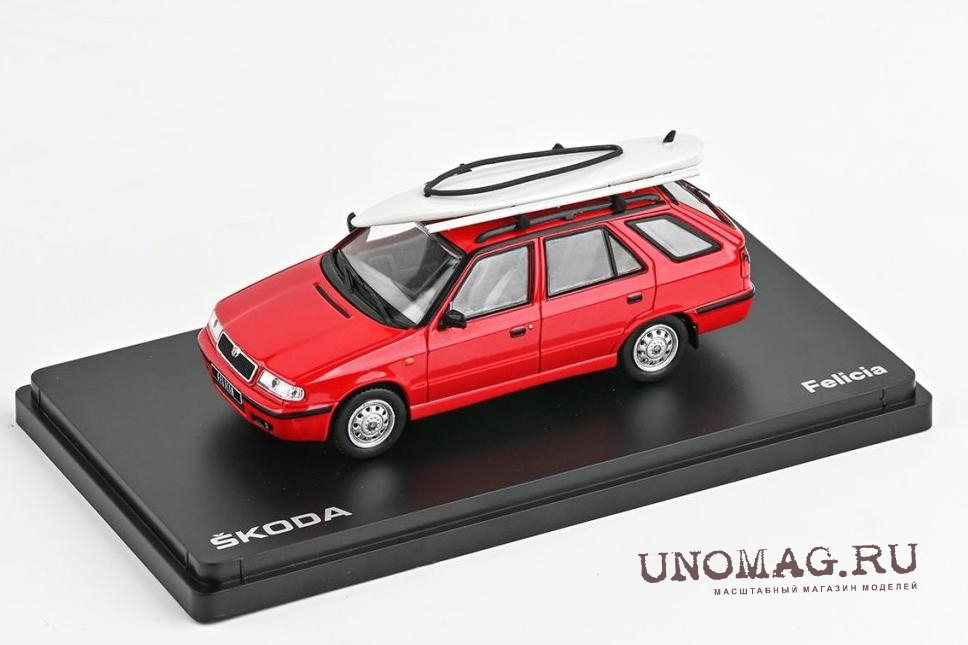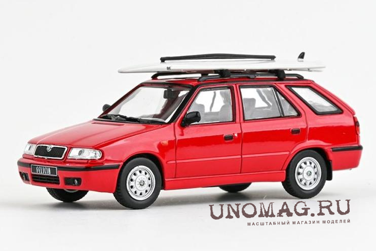 SKODA Felicia FL Combi (1998), красный с багажником на крыше и доской для серфинга