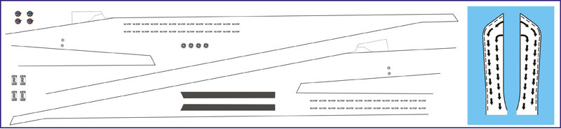 Декаль на Boing 777-300ER Звезда - техничка на крылья (с элементами белой печати)