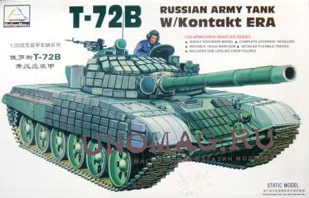 Сборная модель Танк Russian Army Tank Т-72B w/Kontakt ERA с эл. двигателем