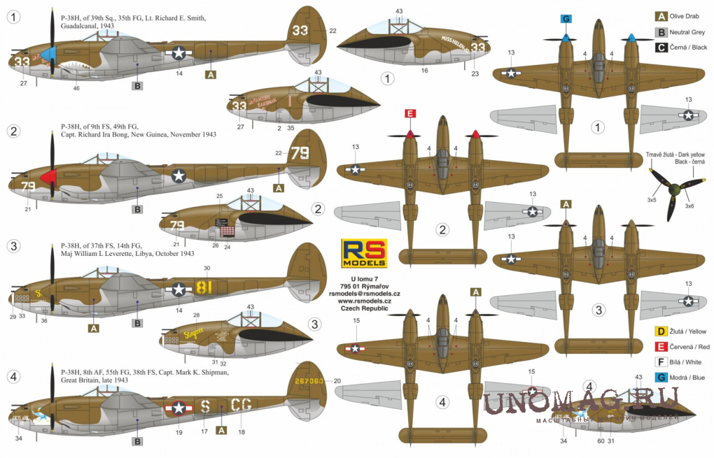 Сборная модель Lockheed P-38H Lightning