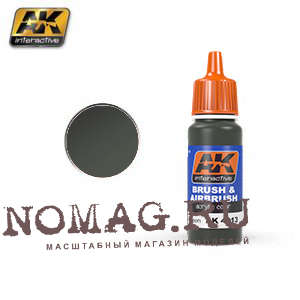 The paint is designed to be effective for airbrush and brush, and is water- soluble, avoiding strong smells and harmful solvents. Non toxic. It can be easily thinned with our specific acrylic thinner or water if necessary. We recommend AK-712 Acrylic Thinner for thinning. There’s no need to dilute the paints when you decide to use your airbrush. When applied by brush they also have a greater degree of coverage. Use alone or mix with other acrylic paints to obtain a different color. Shake before each use. Dries completely in 24 hours.