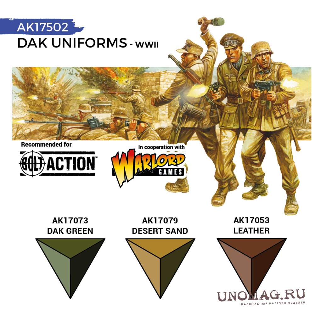 Набор красок QUICK GEN для окрашиванмя солдат DAK (Немецкий африканский корпус).