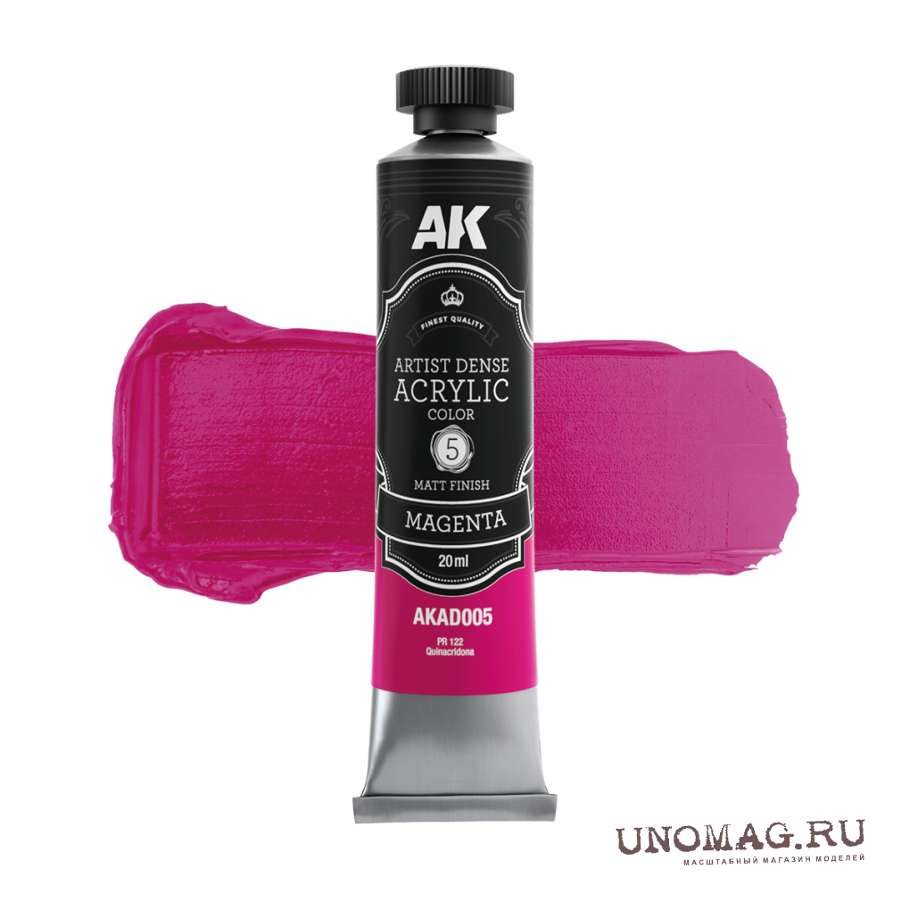 Краска акриловая ARTISTIC DENSE в тюбике - Пурпурный / MAGENTA – ARTISTIC DENSE ACRYLIC COLOR, 20 мл